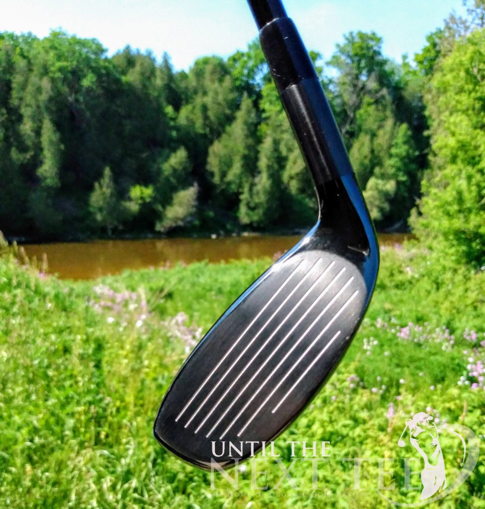 But, I did have the EXS Pro Hybrid with me on that fly fishing outing. It gave me a chance to unbox the product and do an unboxing video and take some pictures. Aesthetically speaking, the EXS Pro Hybrid is one of the nicest hybrids that I’ve had in hand. I love the overall profile of this head. From heel to toe the EXS Pro isn’t elongated (like it’s EXS 220 sibling) and the footprint from leading to trailing edge is compact. Yes, you’re looking down at a rescue club, but it doesn’t feel like it. It’s a great-looking golf club from the address position especially when you also factor that the crown is void of any alignment aid. Then there’s the face!