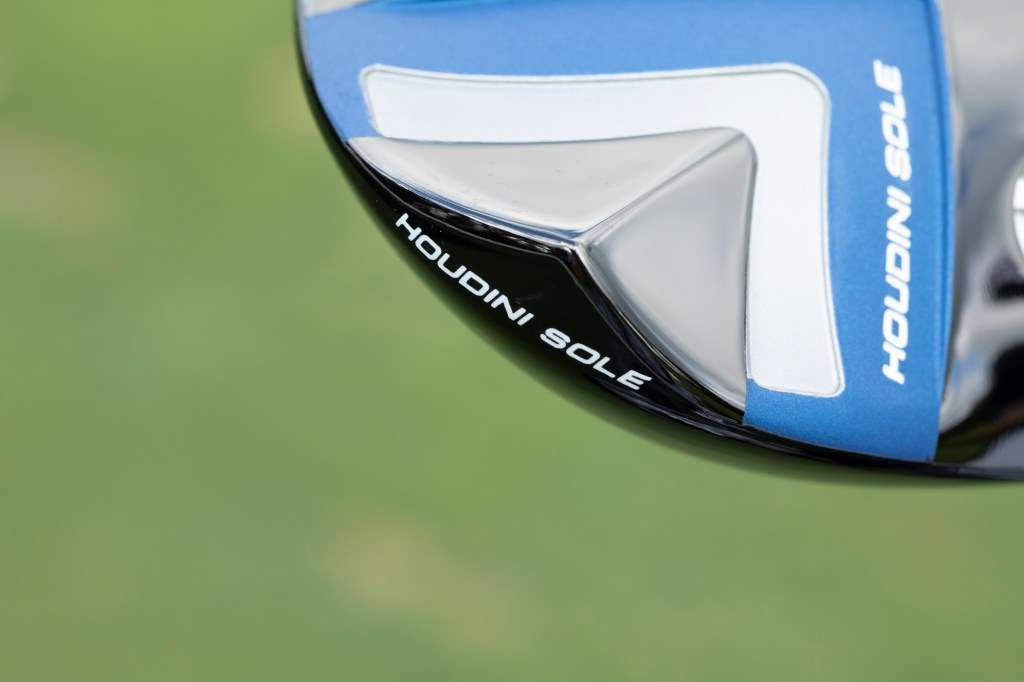 The Houdini Sole includes an area of mass concentrated on the extreme trailing edge of the sole of the clubhead, as well as a curved leading edge under the face.