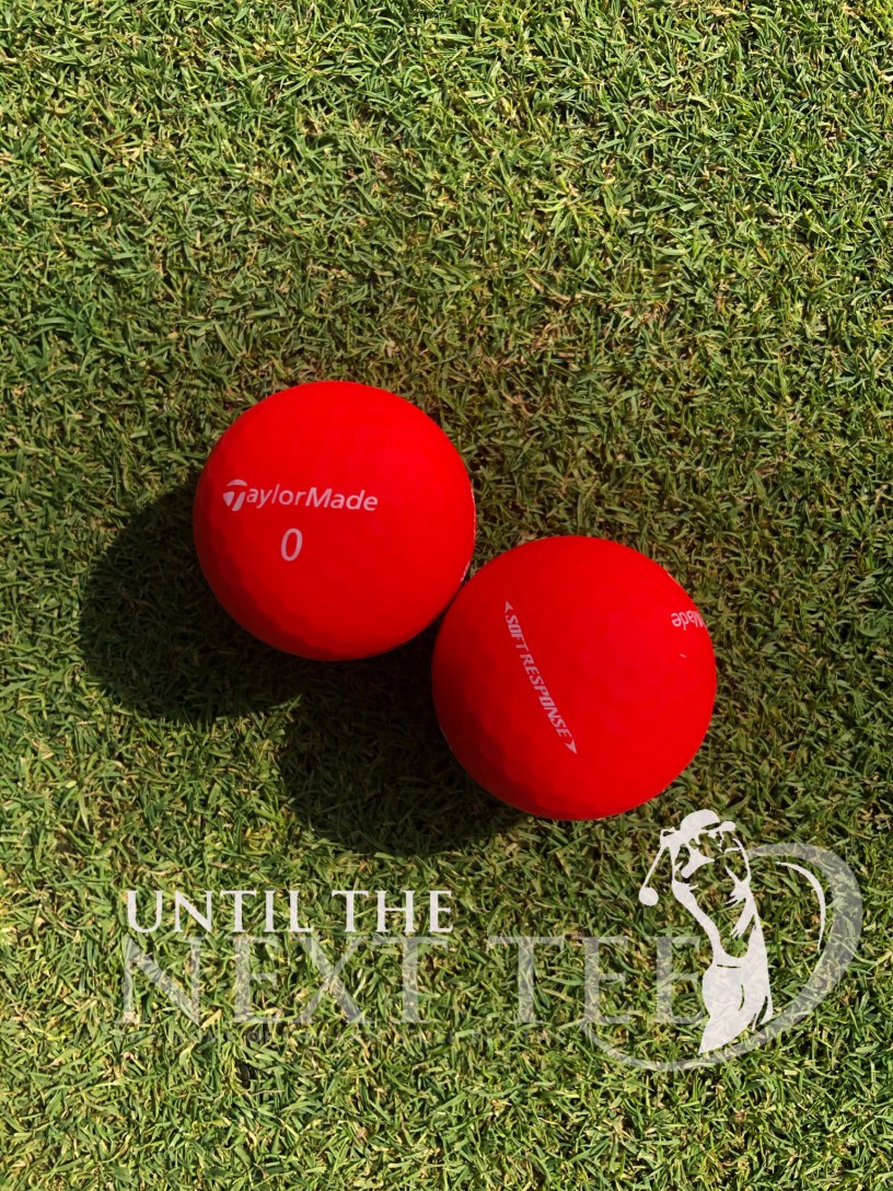 Now, I realize that bright, high-visibility golf balls aren’t for everyone and believe me when I say that I didn’t like them either. But out of need comes necessity or vice versa. There really is quite the market in the golf ball industry for high-viz golf balls, otherwise all of the manufacturers including TaylorMade Golf wouldn’t produce them. And, like it or not, it seems like I’ve fallen into the demographic of golfers that need them. SO, I’ve been searching for the right colour. I’ve struggled with different colours experimenting with green and orange as well. But for some reason, I’m really able to locate and track red. In the air, I find that the red acts like a “shot tracer”.