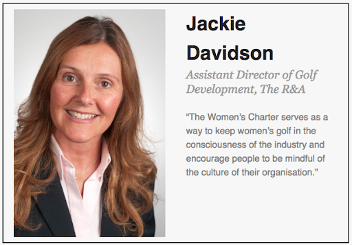 Jackie Davidson, whose work at The R&A has included the evolution of The Women in Golf Charter, commented: “‘I would like to say thank you very much to Women’s Golf Day for this award, it is recognition of the collective efforts of many. I’m proud to play a part, in my role with The R&A, in working collaboratively with organisations across the industry to make golf more appealing, accessible and inclusive.”