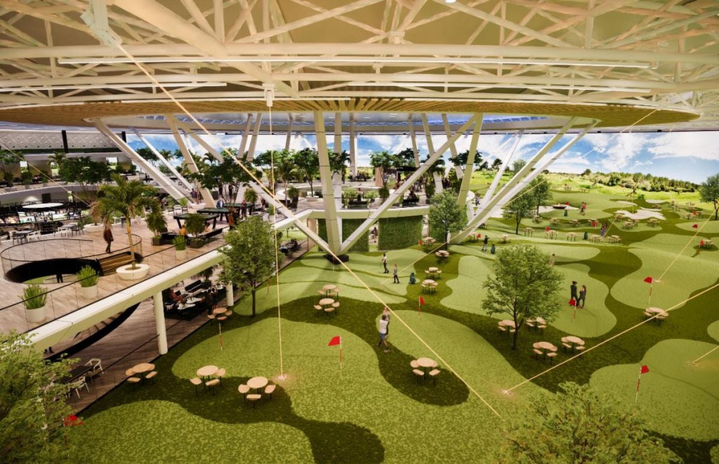The “Golf Field Atrium” within the NextLinks eGolf Arena was designed by Pizá himself. To compliment the technology driven experiences of the “Hitting Bays” he created a strategic laser guided short game course within the indoor park-like setting. The team refers to this as a “Disruptive game changing experience.” Onlookers can enjoy the play from the lounge balconies.