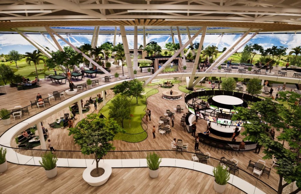 To design an iconic golf complex worthy of the NextLinks state-of-the-art golf technology, Pizá, a vertical architect himself, partnered with the esteemed, award-winning, international architects Victor and Sergio Sanz of Sanzpont, known for their designs that connect people and spaces with sustainability. The brother’s NextLinks eGolf Arena design exceeded the team’s vision and now, rivals the best golf facilities across the globe with its domed structure inspired by the most recognizable shape in the game: the golf ball. Other amenities include its central circular bar visible from any view, variety of eating spaces, private and open spaces, hitting bays, and lounge balconies that flank the signature short game course.