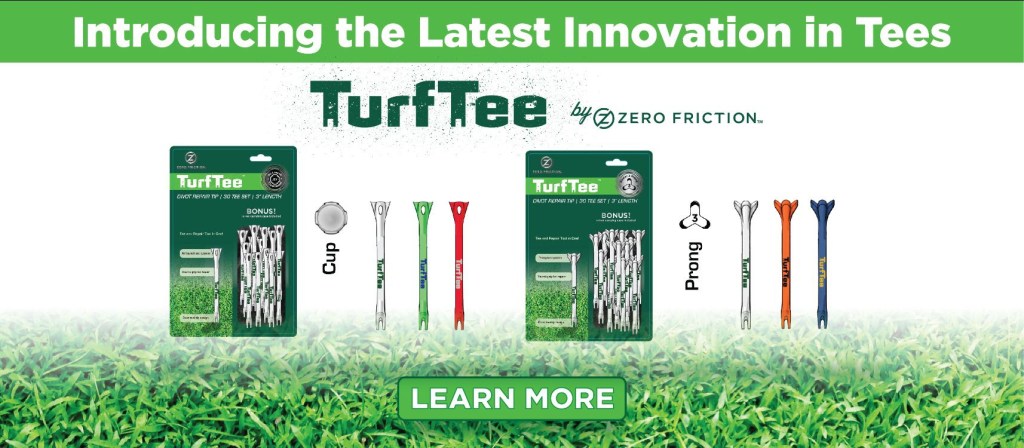 OAKBROOK TERRACE, IL (October 19, 2021) – Zero Friction, LLC, maker of high-quality, technologically advanced products for golfers worldwide, introduces the new TurfTee, a revolutionary product which features a two prong “fork” on the bottom of the tee which easily goes in the ground to safely repair ball marks.
