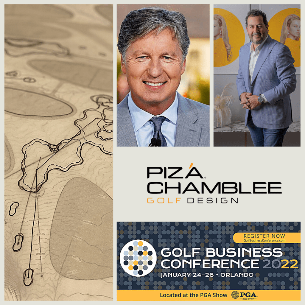 SAN DIEGO, CA. – January 11, 2021 – Pizá Chamblee Golf Design, a recently formed partnership between award-winning architect Agustin (Augie) Pizá and Golf Channel analyst Brandel Chamblee, confirmed today that the duo will officially kick-off the 2022 Golf Business Conference with former on-air Golf Channel personality and former chief communications officer of the LPGA Kraig Kann. The fireside chat will be held at the Rosen Centre Hotel in Orlando, FL on Monday, January 24th from 8:00pm to 9:00pm in the Executive H Ballroom.
