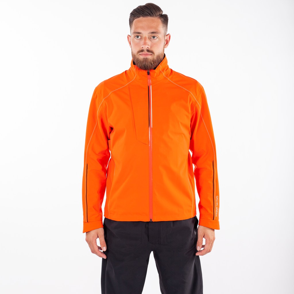 For men, the full-zip APEX spearheads the 100% waterproof jackets that offer protection from the harshest weather conditions in a supremely smart design for use both on and off the course. It features GORE-TEX® stretch fabric to deliverultimate freedom of movement during the swing, a mesh lining for added warmth, conveniently placed pockets on the chest and back, as well as two pockets on the inside of the garment. The jacket comes in six colours, including a distinctive Red Orange option.