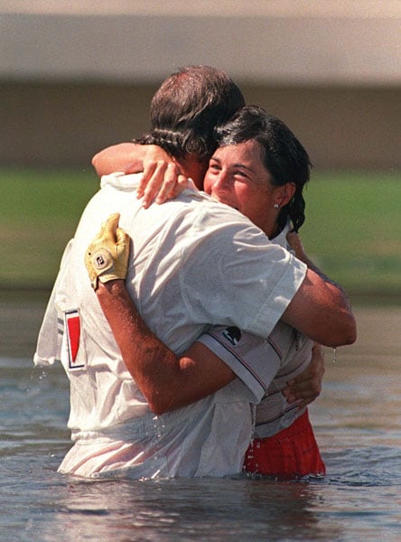 So, how’d we get this annual snapshot in time? The winner in 1988 (Amy Alcott) was the first winner to have jumped into “Champion’s Lake”. Alcott initially did so to celebrate her second victory at the (then titled) Nabisco Dinah Shore. While the splashdown wasn’t immediately embraced, it would be six years later. Leaping into “Poppies Pond” became the tradition that it is in 1994 when victor Donna Andrews claimed victory there. The rest as they say is, history.