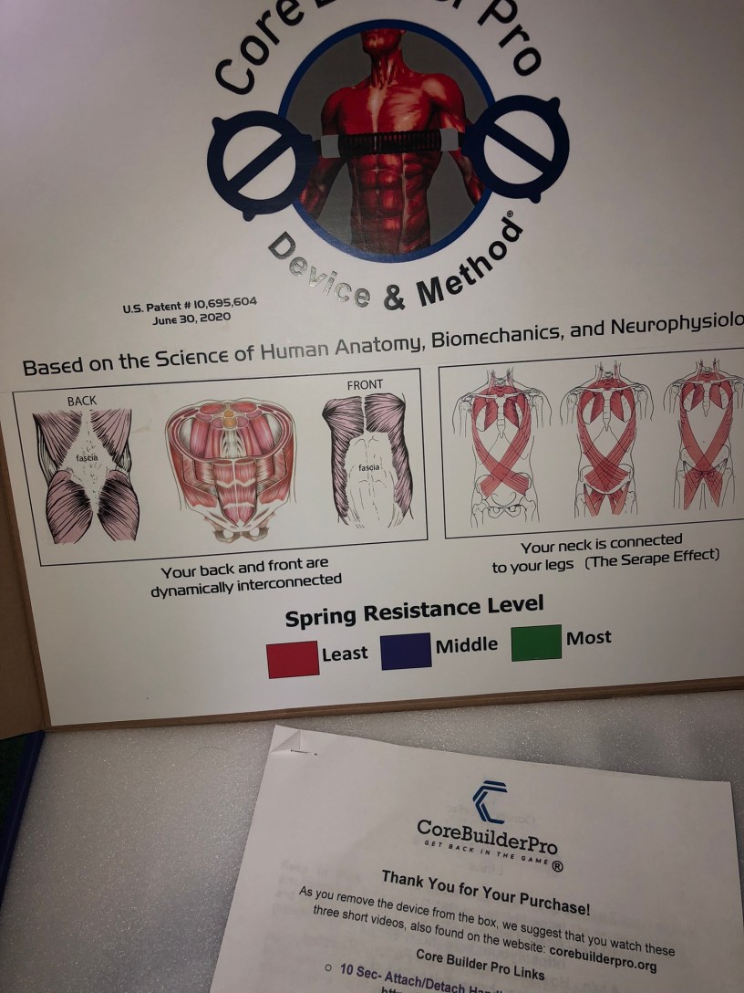 I’ve personally been using the Core Builder Pro for three weeks and I have seen a definite improvement in my core and back in that time. Early on, I thought that there was a “placebo effect” taking place but that isn’t actually what’s taking place. Bona fide improvements not only mentally have been observed but my abdominal area as my wife recently pointed out. “You have an ab,” she said. Physically speaking I’ve noticed changes in my arms, shoulders, pectorals, and urination habits. I’ve noticed mental improvements as well.