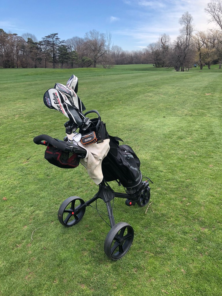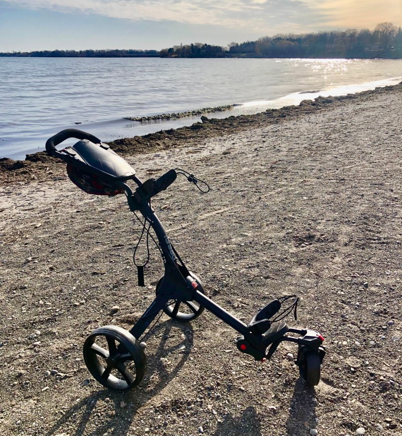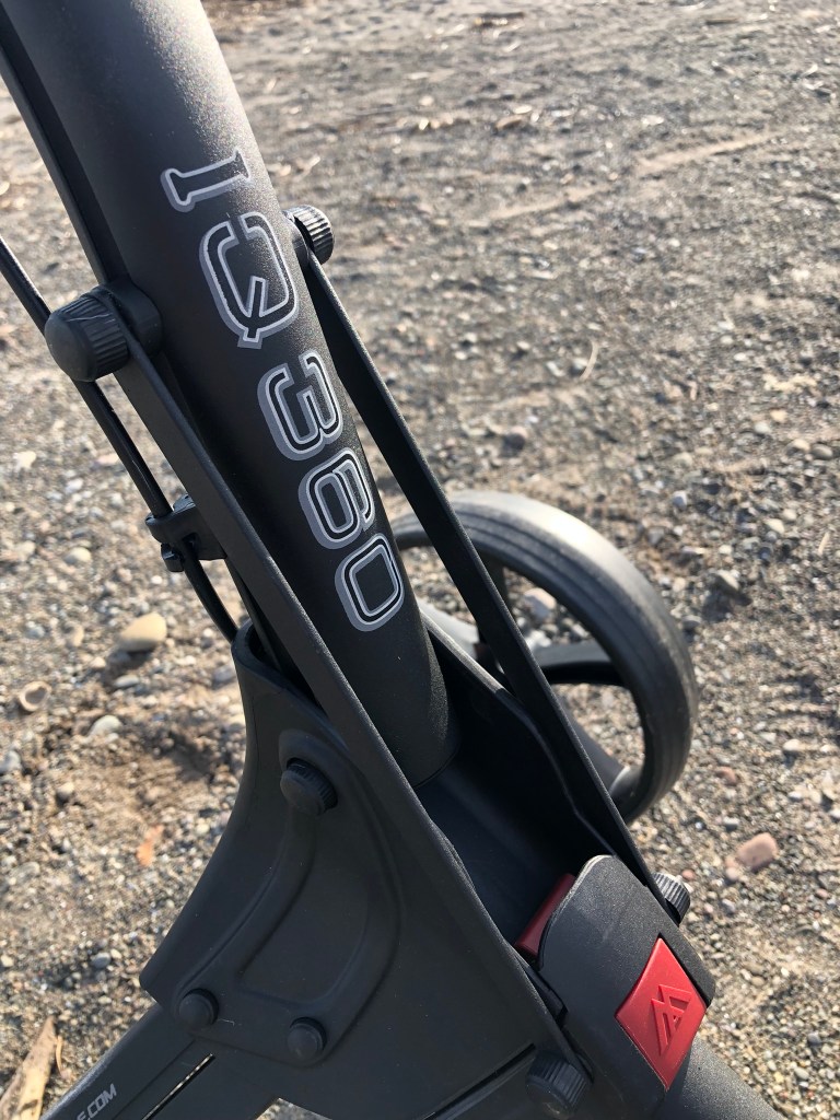 Testing on this IQ 360 push cart started back in April (it’s currently July) and we had some very inclement weather. I actually played golf on a couple of days where there was snow, sleet, rain and winds sustained 70 km/h with gusts approaching 90 km/h (55 mph). In these conditions, the push cart performed very well. It did get blown over a couple of times.The cart was easy to maneuver. On these days, the weather wasn’t fit for man nor beast let alone golf, but it was a long winter.