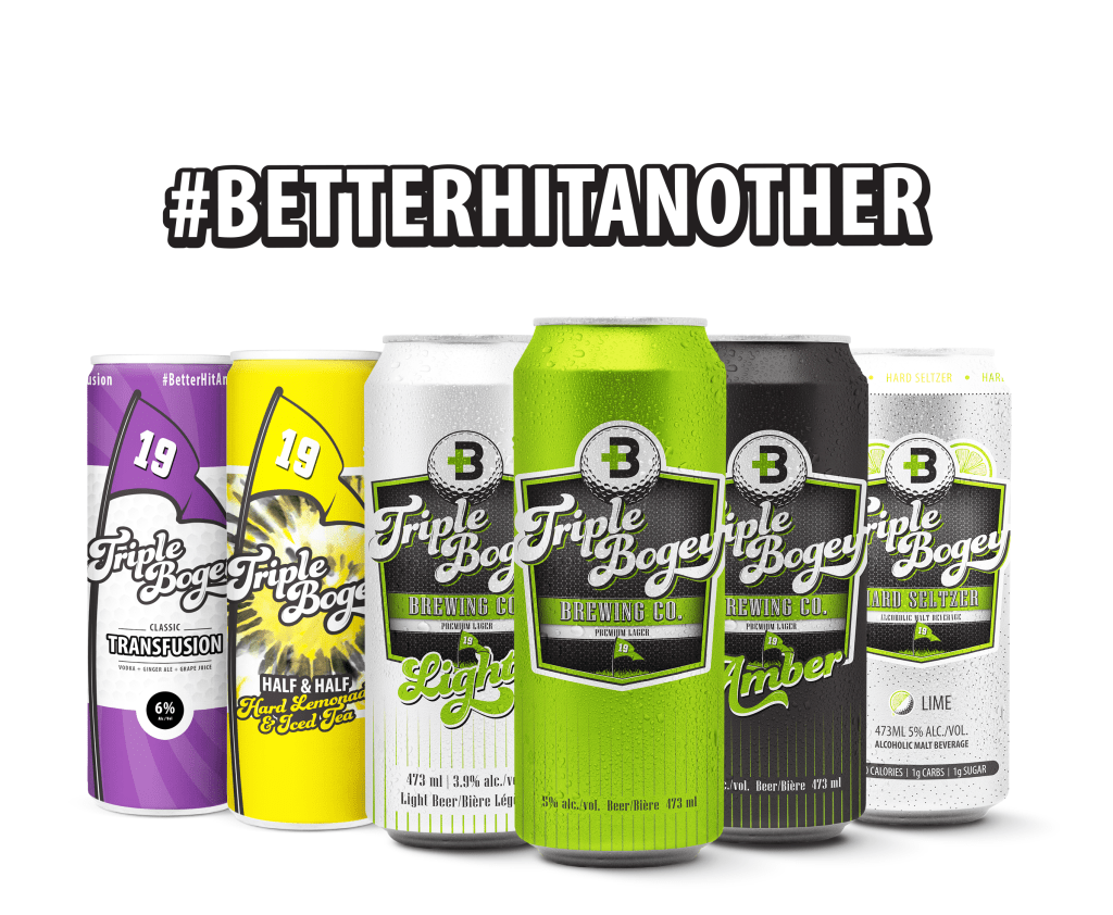 Founded in 2014, the Triple Bogey Brewing Company has been a huge success both on and off the course. Inspired by golf and designed for the masses, Triple Bogey lagers feature Aurora and Perle hops that bring out a slight citrus flavour, while maintaining a refreshingly light and universally approved taste. Add a Hard Lime Seltzer, the crazy popular Half & Half Hard Lemonade & Iced Tea to the mix and, new for 2023, the Classic Transfusion and you have a family of ready to drink beverages for the fairways and perfect on the patios. Triple Bogey’s cans and kegs are sold at over 400 golf courses across Ontario, Canada’s largest province, in addition to being served in excess of 800 locations; bars, restaurants, indoor golf facilities, driving ranges, and participating retail outlets. Expansion across Canada is underway.