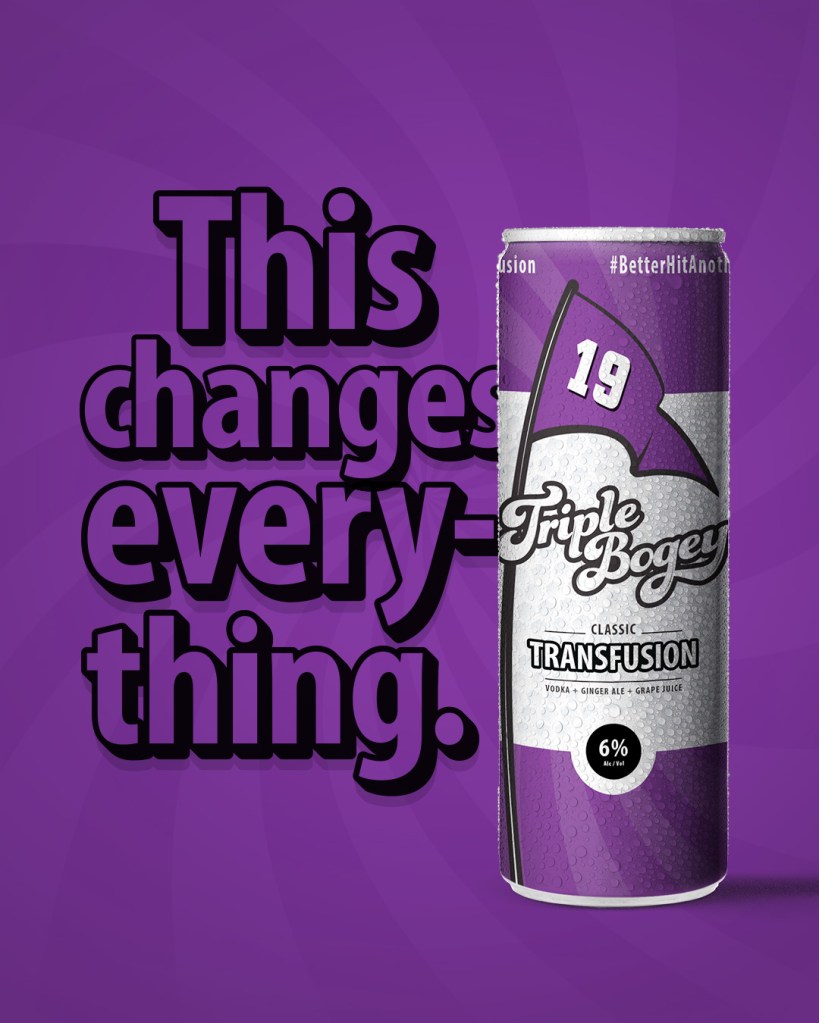 With its carefully crafted blend of ingredients, Vodka + Ginger Ale + Grape Juice + a hint of lime, the Classic Transfusion delivers that unique taste which has made it so crazy popular for generations. Ideal for those looking for a refreshing and sophisticated drink option, the Triple Bogey Classic Transfusion is easy to enjoy on the fairways, clubhouses, patios, whether at home or on the go.