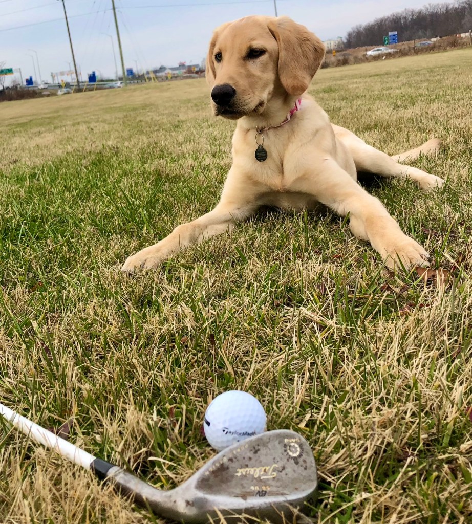 Like an addict that’s addicted to substances, you make a reckless decision to grab a wedge, golf ball, and your 17-week old puppy. Now you’re at your spouse’s workplace and there’s a lot of grass. Nay, a field. The perfect place to let your pup off of the leash and introduce her to golf. You have her “sit”, “stay”, and “leave it”. For the first time in months you address the golf ball. You strike it – a little thin – and she tracks the golf ball in the air. She locates the golf ball in the 2” long dormant grass and returns to you. Dropping the golf ball after a couple of “drop it” commands she drops it at your feet. Perfect!