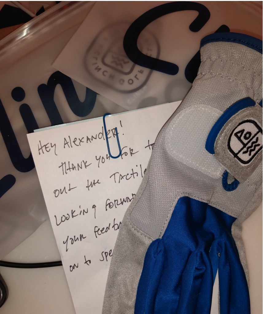 Upon opening my package from Clinch Golf I noticed that from a sustainability standpoint the packaging was eco-friendly. The packaging is multi-purpose and reusable. The packaging is void of any single use plastics. My immediate impression of the Tactile Glove was very positive. The quality of the stitching and the enclosure was clean and overall well-constructed.