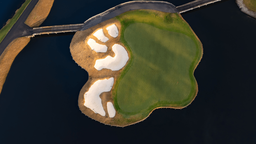 The iconic island green par-3, home to the famed “SC” bunker, has been refined to enhance both playability and visual appeal. The signature bunkers have been reshaped so that their sand lines are more striking from the tee, while also restoring their strategic relationship to the putting surface. The green itself has been expanded, offering a larger target and more variety in pin positions, while subtle contouring adds interest. The result is a hole that remains true to its heritage but is more fun to play